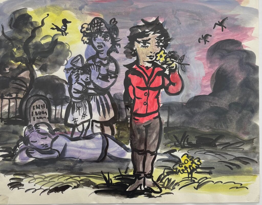 It’s the next day. I don’t feel like crying anymore. I hate my boss. I can’t cry. I can’t grieve. It’s time to plan his funeral, but none of us sisters want go back to England now that he is dead. Mum has offered to go for us. Poor mum. They have been divorced for over twenty years and she’s hardly seen him since. He wanted a wicker casket but no one will fork out the money.